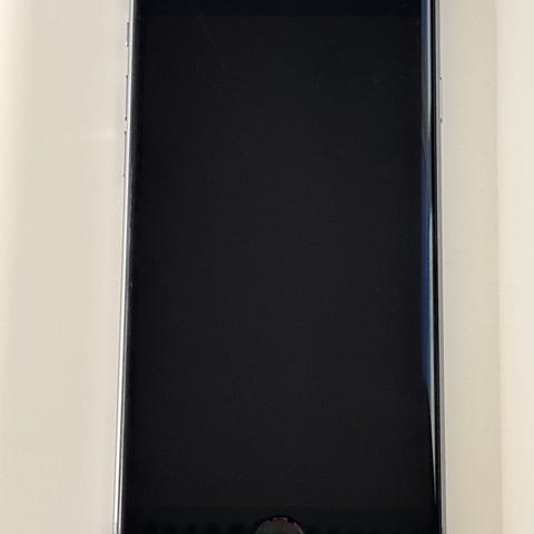 Apple iPhone 6 smartphone med 32 GB intern hukommelse. Modellen har trykfølsom hjem-knap på fronten og kamera på bagsiden. Farven fremstår som grå med lys front og mørk bagside. Velegnet til almindelig brug som opkald, beskeder, apps og internet. Understøtter opladning via Lightning-stik og brug af nano-SIM-kort.