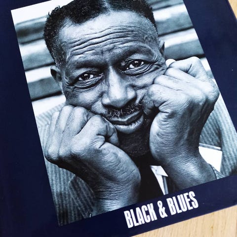 Coffeetable-bog med sjældne portrætter og musik af berømte bluesmusikere.