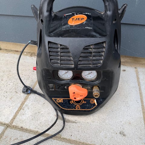 Støjsvag universalkompressor med god ydelse — ideel til søm- og klammepistol samt generelt trykluftværktøj.
