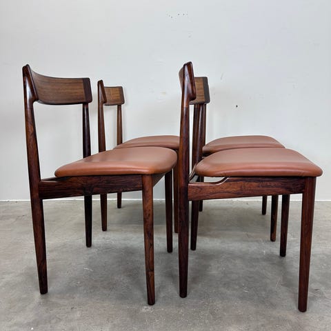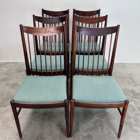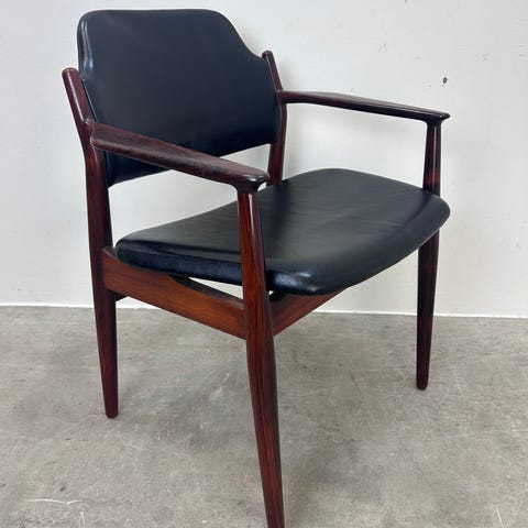 6 Arne vodder stole med stel i massiv palisander med sæde og ryg i sort læder
