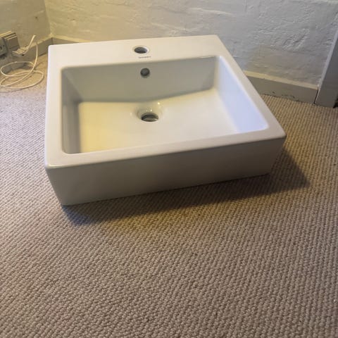 Vasken er slebet og glaseret på undersiden fra fabrikken således den med plane flade kan monteres oven på bord møbel mm. Mål 500x470mm Hvid højglans med WONDERGLISS Duravit vnr. 04525000001