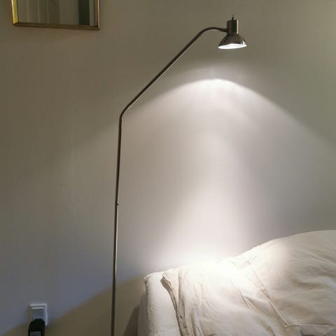 Fin standerlampe med uplight og læselampe sælges. Hvis det ønskes, kan en lignende, fungerende lampe medfølge som reservedele.