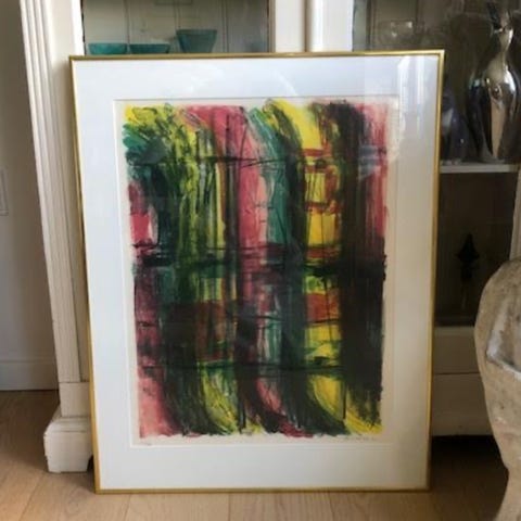 Jan Sivertsen er en alsidig kunstner, der arbejder med maleri, glas, skulptur og grafik. Han er som andre flyttet til Paris, hvor han bl.a. har studeret kolorisme, og at han er kolorist selv fremgår også af dette litografiske arbejde med anelser af kroppe. Litografiet har fået et par "knæk" nederst til højre, der dog kan dækkes med en passe-partout. Det er prisen sat efter. Arkmål: 38x54 cm. Kan ses i Aarhus.