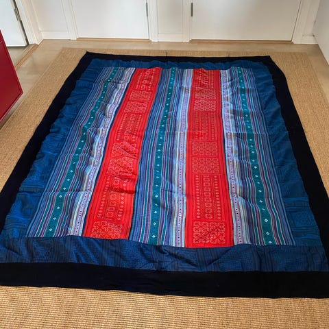 To flotte håndvævede vietnamesiske tæpper i autentiske mønstre fra Vietnams nordlige stammeprovinser.
