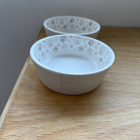 District 70 bambus foderskåle merengue (lys) og charcoal (mørkegrå) til katte. 12 cm. Sender ikke.