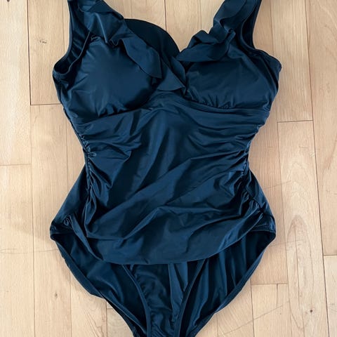 Elastisk/ blød, falder pænt og krøller ikke - så velegnet til at pakke med på ferie. Der er påsyet et slags slag, der gør den festlig. Ubrugt med mærker på.