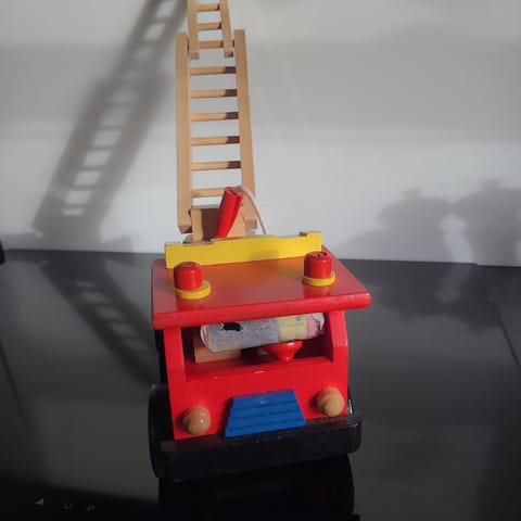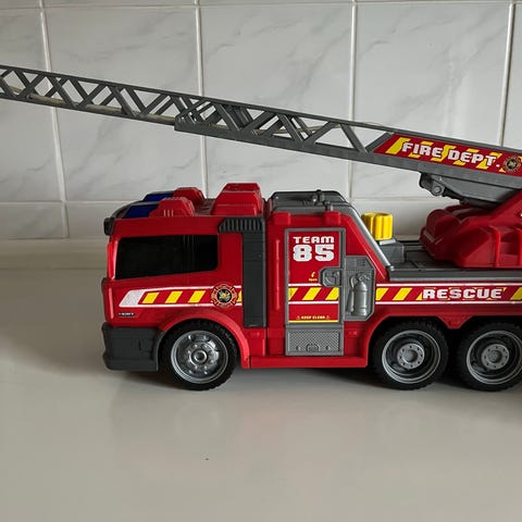 BRIO legetøjsbrandbil i rød farve. Brandbilen er udstyret med gul stige på taget og har detaljerede tryk på siderne. Egnet som legetøj til børn eller som samlerobjekt. Fremstillet som lille køretøj, der kan rulles på hjul på gulv eller andre plane overflader.