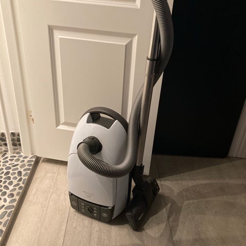 Rigtig pæn Miele støvsuger. Det er en model Complete C3 Black Diamond Ecoline( SGDF3 ) Den har en af Mieles nyudviklede motor på 890W der ikke bruger så meget strøm men stadig suger rigtig godt. Den har et af de bedre teleskoprør der kan indstilles i højden til den der bruger den. Den har seks niveauer i sugestyrke der styres med + og - taster. Den har selvoprul af ledning ved et tryk på kontakt. Der medfølger tre mundstykker der er integreret under låg. Den er flot og alt fungerer selvfølgelig som det skal. Den er total rengjort ,der vil ikke kunne findes 1 g snavs på den.