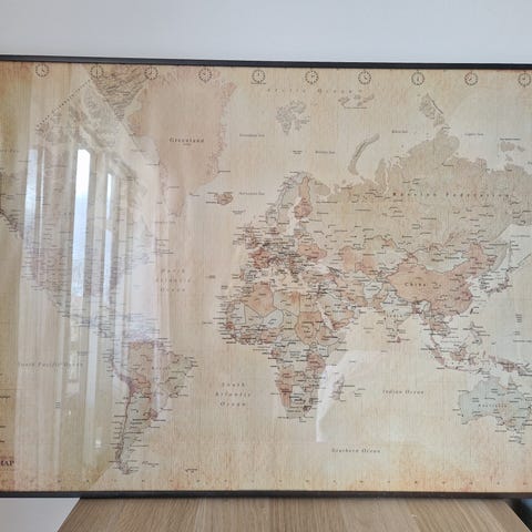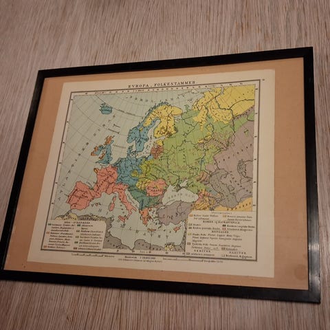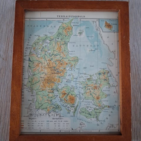 Fra undervisningsmateriale. Indrammet i flot mørk træramme. Måler ca 35x28 cm