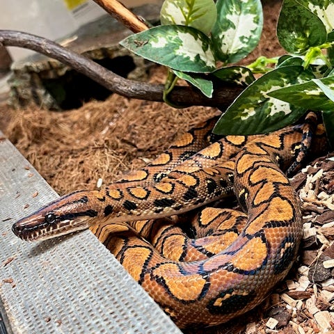 Vi tilbyder 5 stk Braziliansk Røde regnbue boaer 3,2 som er 100% het (Lockwood hypo)