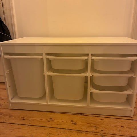Sættet består af flere sammenklappelige kasser i tekstil med lynlås i bunden, som gør dem nemme at folde sammen og opbevare fladt, når de ikke er i brug. Kasserne har forskellige størrelser, som egner sig til organisering af fx skuffer, skabe eller børneværelse. Farve: hvid. Materiale: tekstil/plast (syntetisk). Velegnet til opbevaring af mindre ting som tøj, legetøj eller tilbehør.