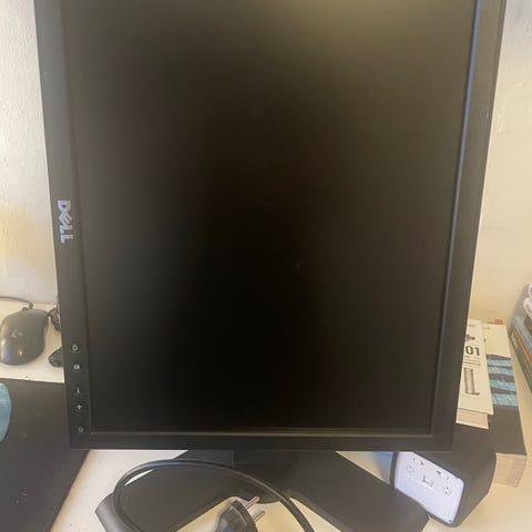 Dell skærm på 16" i sort. Skærmen leveres med fod og tilslutningskabel som vist på billederne. Velegnet som ekstern skærm til stationær eller bærbar computer, f.eks. til kontorbrug eller som ekstra skærm ved skrivebordet.
