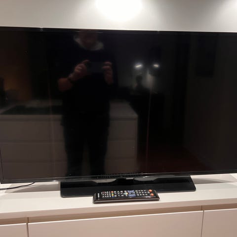 Samsung UE40MU6105KXXC tv. LED-tv med 40 tommer skærm. Modellen har flere HDMI-indgange samt USB-port på bagsiden til tilslutning af eksterne enheder. Der medfølger Samsung-fjernbetjening som vist på billederne. Velegnet til almindelig tv-brug og streaming via tilsluttede enheder.