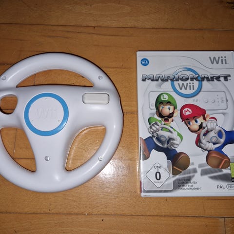 Wii mario kart pakke i original kasse, kommer med spil og rat.