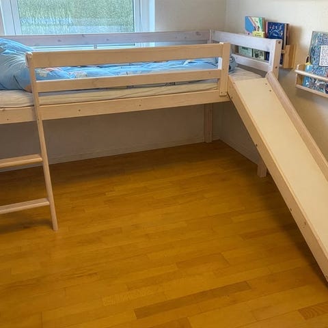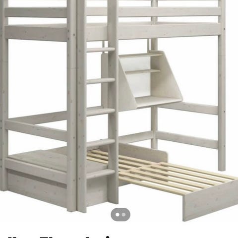 Højseng 120 cm til barnet med sengehest og stige, 90X200 cm, hvid.