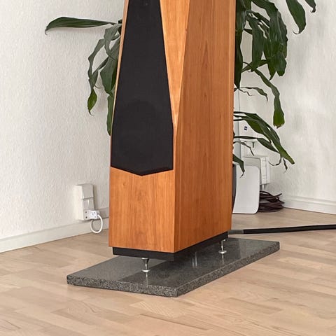 GoldenEar Triton Reference front-højttalerne sælges uden stof “socks” / frontstof og står derfor med synlig metal/driver-front.