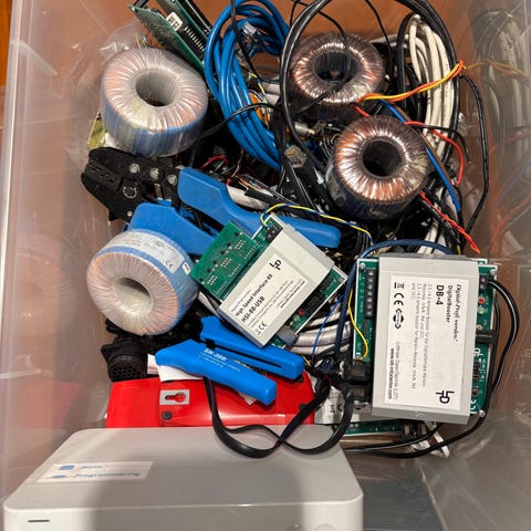 Elektronik komponent sæt bestående af sortiment af modstande, kondensatorer og integrerede kredse (IC’er) organiseret i plastbokse med rumopdeling. Sættet indeholder gennemgående komponenter til lodning på printplader, herunder modstande med farvekoder, forskellige typer kondensatorer samt flere typer IC-kredse i DIP-huse. Egnet til elektronikprojekter, reparationer og hobbybrug, hvor der er behov for et udvalg af standardkomponenter samlet ét sted.