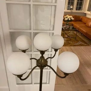 Gammel Richard Essig gulvlampe med 6 opalglas skærme fra 1960'erne