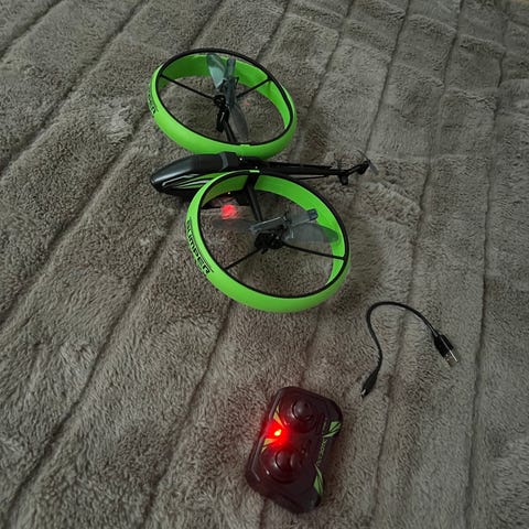 Drone med bløde bumpers om propellerne samt kamera (kræver indsættelse af sd kort).