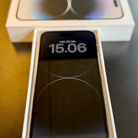 iPhone 14 Pro med Cover og lader kabel