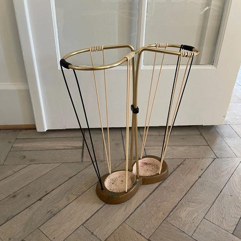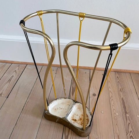 Paraplyholder med messingstativ og støbejernsbund fra 1960'erne