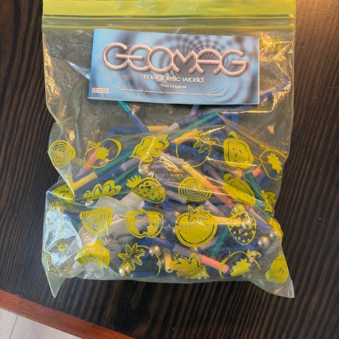 Lille kasse med Geomag - som også er magnetisk byggesæt, men i mindre form.