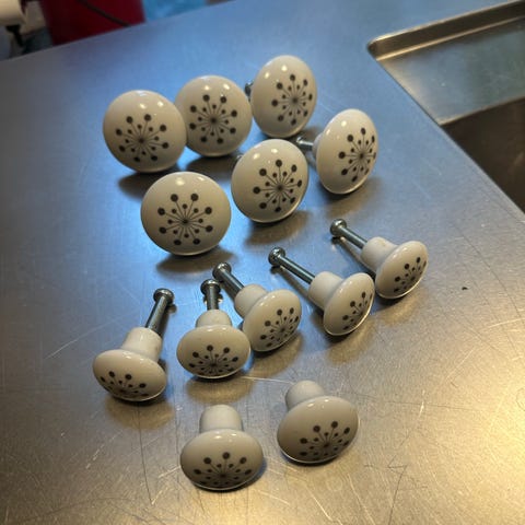 3 Stk. 100% intakte og fejlfrie porcelænsknopper / møbelgreb designet af Anne Black.