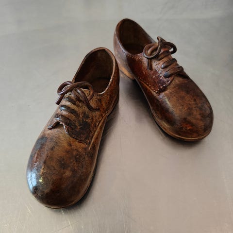 Parisevetro dekorationssko i klart glas med håndmalede blomsterdetaljer. Skoen er formet som en flad damesko og måler ca. 24 cm i længden. Fremstillet i Italien. Velegnet som pyntegenstand eller som del af en dekoration, f.eks. på hylde, bord eller i vitrineskab.