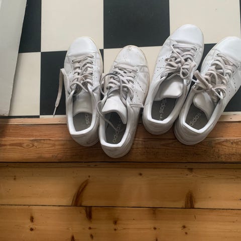 Alt originalt medfølger, skoene sælges til halv pris af retail hos Adidas.