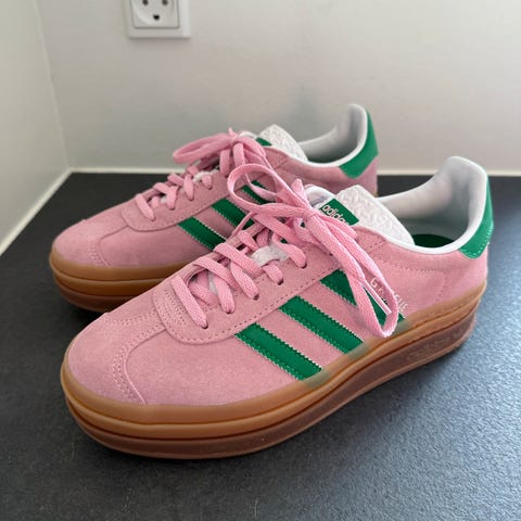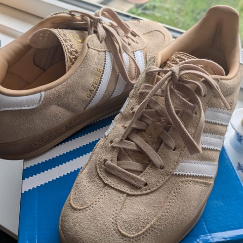 Flot Adidas gazelle i lys brun og mørke striber, sælges i str 39 1/3.
