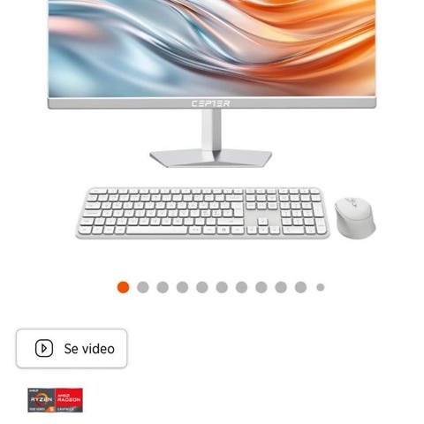 HP 24-cr0824no R5/8/512/IPS all‑in‑one stationær computer i hvidt design. Skærm og computer er integreret i én enhed med tilhørende hvidt tastatur og mus. På bagsiden ses flere USB‑porte, netværksstik (LAN) samt lydindgang/udgang. Skærmen har indbygget pop‑up webcam i toppen. Egnet til almindelige kontoropgaver, internetbrug og medieafspilning afhængigt af den konkrete hardwarekonfiguration, som ikke fremgår af oplysningerne her.