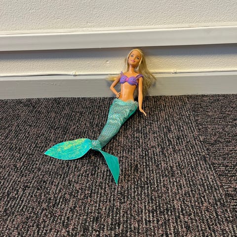 Barbie havfruedukke med farveskiftende hale. Dukken forestiller en havfrue med langfarvet hår, top og hale med glimmerdetaljer. Halen kan skifte farve i vand, som vist på emballagen. Leveres i original emballage med illustrationer af dukken og tilbehør. Egnet som legetøj til børn, der kan lide dukker og fantasiverdener med havfruer.
