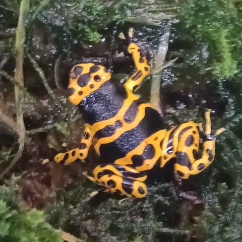 Hej jeg har fem Phyllobates terribilis mint. der gerne vil flytte hjemmefra. De spiser store bananfluer. De er ukønnet. Billede 1 er forældre dyr. 250 stykket alle 5, 1000 kr