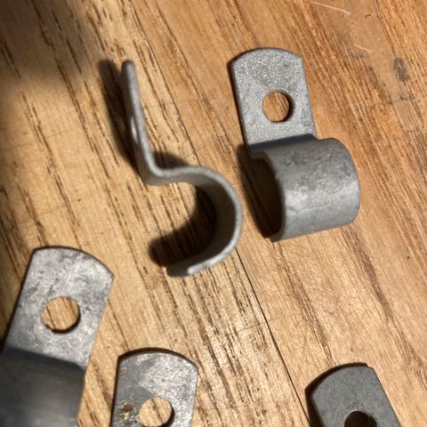 NKT Varmforzinkede kabelbøjler med 2 lapper i 12 mm. Æsken indeholder dog kun ca. ca. 150 stk. Prisen er derfor kun kr. 80,-