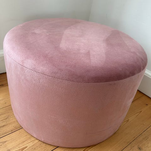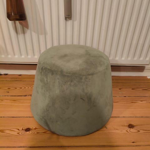Flot mørkegrøn velour puf, købt i Søstrene Grene.