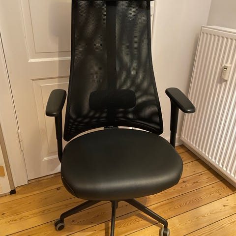 Kontorstol /gamerstol i sort polster og metal med højt ryglæn. Med gaspatron så højden kan justeres trinløst. Købt i efterår 2025 og kun brugt meget lidt, så den står som ny.