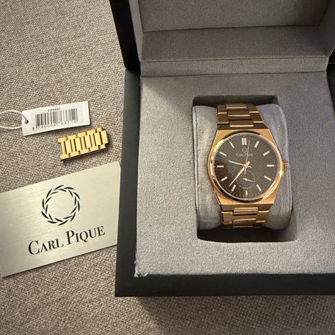 Helt nyt ur. Model: Carl Pique Riviera CP0031. Aldrig brugt. Der er stadig plastik på. Kasse medfølger. Der er stadig lige under 3 års garanti. Købt hos Ditur.