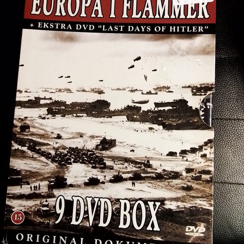 World War II Europa i flammer dvd. Dokumentar om Anden Verdenskrig med fokus på Europa, med sort-hvide optagelser fra krigshandlingerne. Udgivelsen er del 8 i serien og er mærket med aldersgrænse 15 år. Format: dvd.