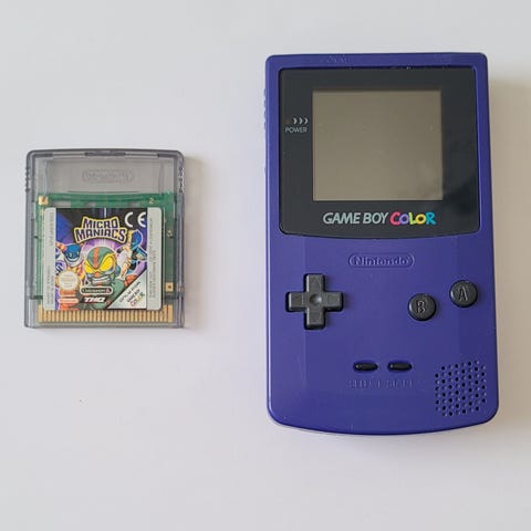 Sælger Game Boy Color i farvel Lilla, med spillet Duck Tales.