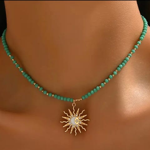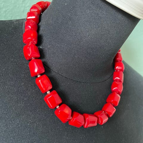 Utrolig smuk halskæde i 10 mm multi farvet Jade perler med glasperler mellem og stål forlængerlås.