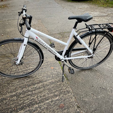 Pæn og meget velholdt hvid Centurion Challenger dame citybike med stelnummer: WAK40707G med 52 cm stel, 7 indvendige Shimano Nexus gear, lås og bagkurv og fastmonterede lygter. Cyklen har fået ny: sadel og pedaler, for og baglygte, lås og klokke, geargreb og kabel, håndtag og bremseklodser, krankboks, kranksæt og støtteben. Cyklen kører som en drøm, og alt virker på den. Cyklen har alle lovpligtige reflekser og ringeklokke, der medfølger 2 nøgler til låsen.