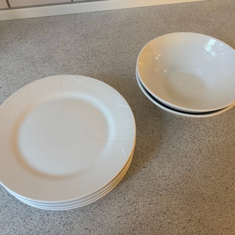 15 stk. Hvid Elements spise tallerkener 28 cm - 1 sortering; Er som ny - ingen synlig brugsspor. Pr. stk. 200,- Sælges helst samlet for 2500,- (svarende til 166,67 kr. pr. stk. ved samlet)