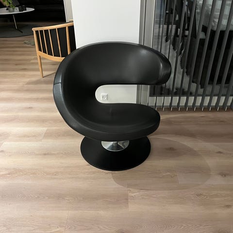 Eksklusiv Varier Peel Club med sort anilin læder og med sortlakeret træ base.