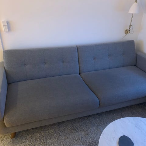 Sælger en stilren og komfortabel NOA 3-personers sofa fra SOFACOMPANY i farven Planet Grey Green. Sofaen har et moderne udtryk med sorte metalben (E 16 cm).