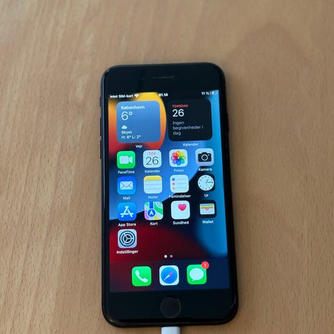 Apple iPhone 7 smartphone med 32 GB intern hukommelse i sort. Modellen har touchskærm på fronten og enkeltkamera på bagsiden. Enheden leveres med original emballage som vist på billederne. Velegnet til almindelig brug som opkald, beskeder, internet og apps med iOS-system. Batteri 74%. Høretelefoner og oplader medfølger ikke. Er nulstillet og virker fint.