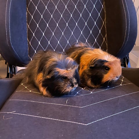 2 marsvine brødre sælges. De er blanding mellem CH Teddy og roset hun. De er dog mest Teddy præget. De sælges kun sammen da fungerer virkelig godt sammen. De er født 3 december. Sælges samlet for 350 kr til et godt marsvine hjem.