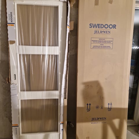 Swedoor skydedør med skinne og kappe sælges