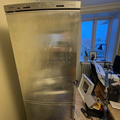 Fritstående køle-fryseskab fra Siemens i stål. Er købt i april 2017. Fungerer upåklageligt. Kan afhentes i Hvidovre fra uge 10 (1 marts) efter aftale.