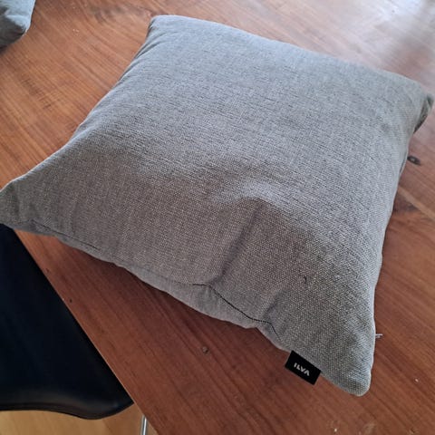 Ilva pyntepude med et marmormønster i grå og hvide nuancer. Størrelse 50x50 cm. Har brugsspor/lidt fnuller (se billeder). Betræk og pude medfølger. Lynlåsen i betrækket har sat sig fast. Ny vasket i neutral vaskemiddel.