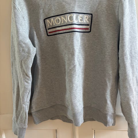 Moncler hættetrøje til herre i størrelse XL. Trøjen er grå og fremstillet i bomuld. Modellen har hætte med snøre, gennemgående lynlås foran og kængurulommer. På ærmet ses Moncler-logo samt stribe-detalje i flere farver. Velegnet som casual overtøj eller mellemlag i hverdagen.